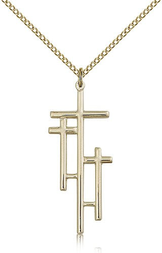Cross Pendant is paired with an 18" gold filled light curb chain as pictured. All medals are gift boxed in a light blue velvet gift box ready for gift giving.