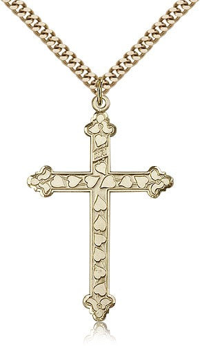 This Cross Pendant is paired with a 24 inch stainless steel gold-tone heavy curb chain as pictured. All medals are gift boxed in a light blue velvet jewelry box ready for gift giving.