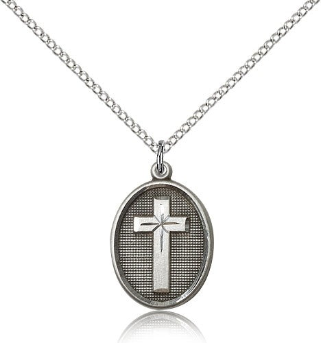 This Cross Pendant is paired with an 18 inch sterling silver lite curb chain as pictured. All medals are gift boxed in a light blue velvet jewelry box ready for gift giving.