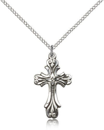This Cross Pendant is paired with an 18 inch sterling silver lite curb chain as pictured. All medals are gift boxed in a light blue velvet jewelry box ready for gift giving.