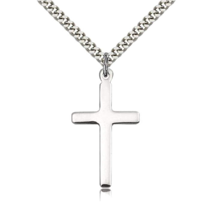 This Cross Pendant is paired with an 18 inch sterling silver lite curb chain as pictured. All medals are gift boxed in a light blue velvet jewelry box ready for gift giving.