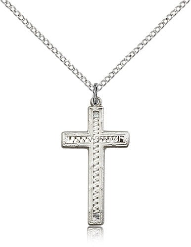 This Cross Pendant is paired with an 18 inch sterling silver lite curb chain as pictured. All medals are gift boxed in a light blue velvet jewelry box ready for gift giving.