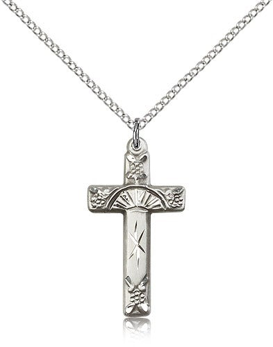 This Cross Pendant is paired with an 18 inch sterling silver lite curb chain as pictured. All medals are gift boxed in a light blue velvet jewelry box ready for gift giving.