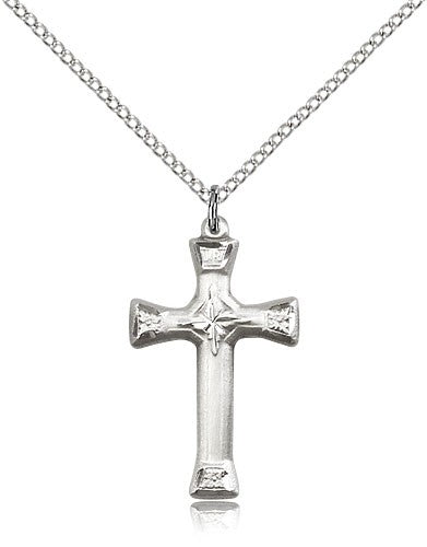 This Cross Pendant is paired with an 18 inch sterling silver lite curb chain as pictured. All medals are gift boxed in a light blue velvet jewelry box ready for gift giving.