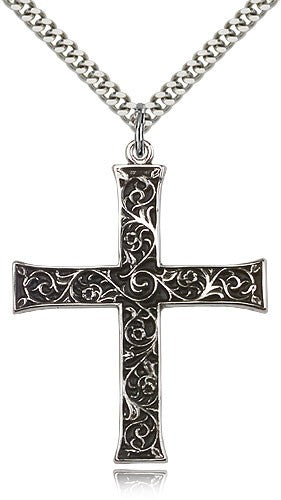 Cross Pendant, Sterling Silver - 24" 2.4mm Rhodium Plate Endless Chain