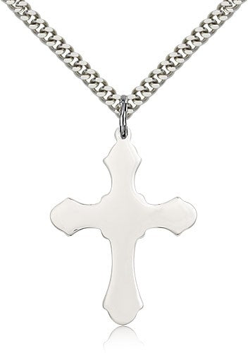 This Cross Pendant is paired with a 24 inch stainless steel heavy curb chain as pictured. All medals are gift boxed in a light blue velvet jewelry box ready for gift giving.