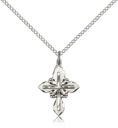 This Cross Pendant is paired with an 18 inch sterling silver lite curb chain as pictured. All medals are gift boxed in a light blue velvet jewelry box ready for gift giving.