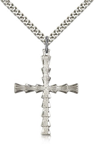 This Cross Pendant is paired with a 24 inch stainless steel heavy curb chain as pictured. All medals are gift boxed in a light blue velvet jewelry box ready for gift giving.