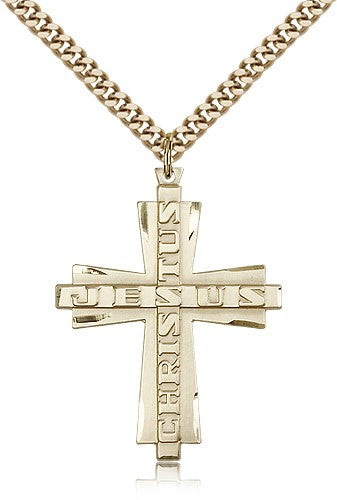 Jesus Christus Cross Pendant, Gold Filled
