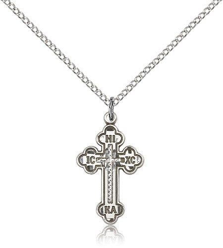 This Russian Cross Pendant is paired with an 18 inch sterling silver lite curb chain as pictured. All medals are gift boxed in a light blue velvet jewelry box ready for gift giving.