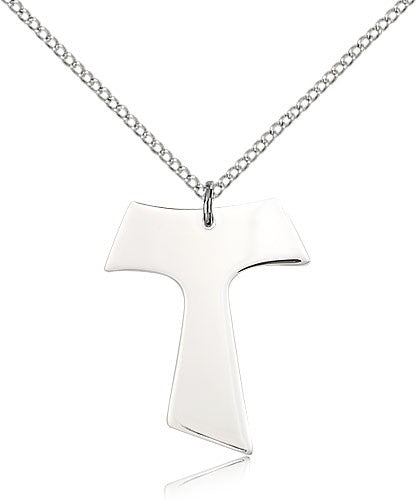 This Tau Cross Pendant is paired with an 18 inch sterling silver lite curb chain as pictured. All medals are gift boxed in a light blue velvet jewelry box ready for gift giving.