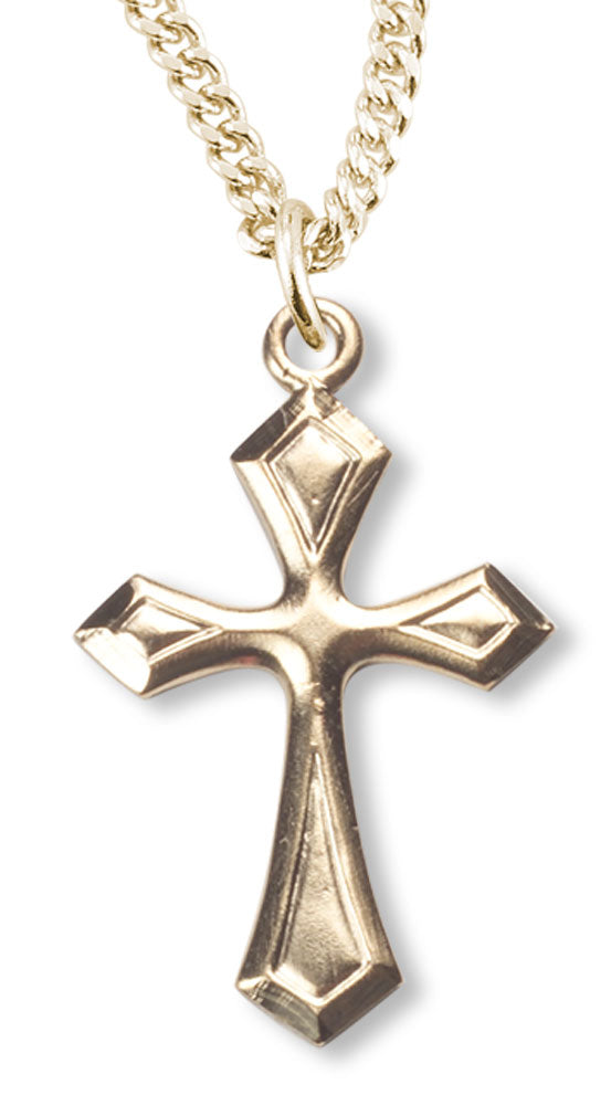Women's 14kt Gold Plated Beveled Edge Diamond Pattern Cross Necklace + 18 Inch Gold Plated Chain & Clasp