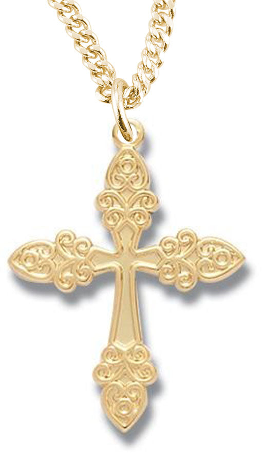 An elegant women's cross necklace with fancy cross tips with hints of Byzantine styling. Simply beautiful!
