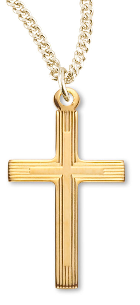 Women's 14kt Gold Plated Slim Line Stripe Etched Cross Necklace + 18 Inch Gold Plated Chain & Clasp