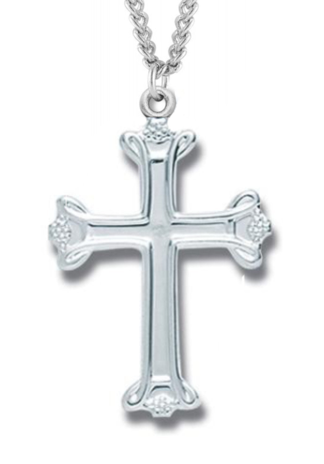 Women's Sterling Silver Budded Cross Necklace with Chain Options