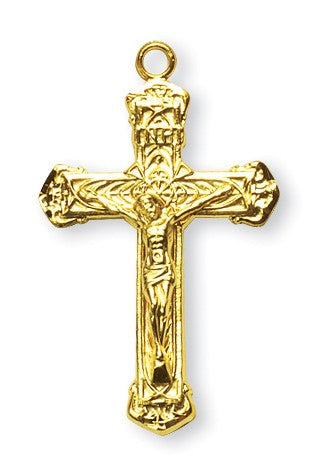 Crucifix Necklace Ornate, 16 Karat Gold Over Sterling Silver with Chain