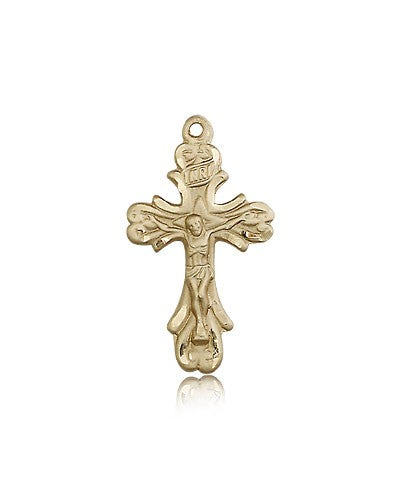This Crucifix Pendant is made of 14 Karat Gold. The jewelry pendant is sold as pictured and does not come with a chain. All medals are gift boxed in a light blue velvet jewelry box ready for gift giving.