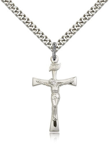 This Maltese Crucifix Pendant is paired with a 24 inch stainless steel heavy curb chain as pictured. All medals are gift boxed in a light blue velvet jewelry box ready for gift giving.