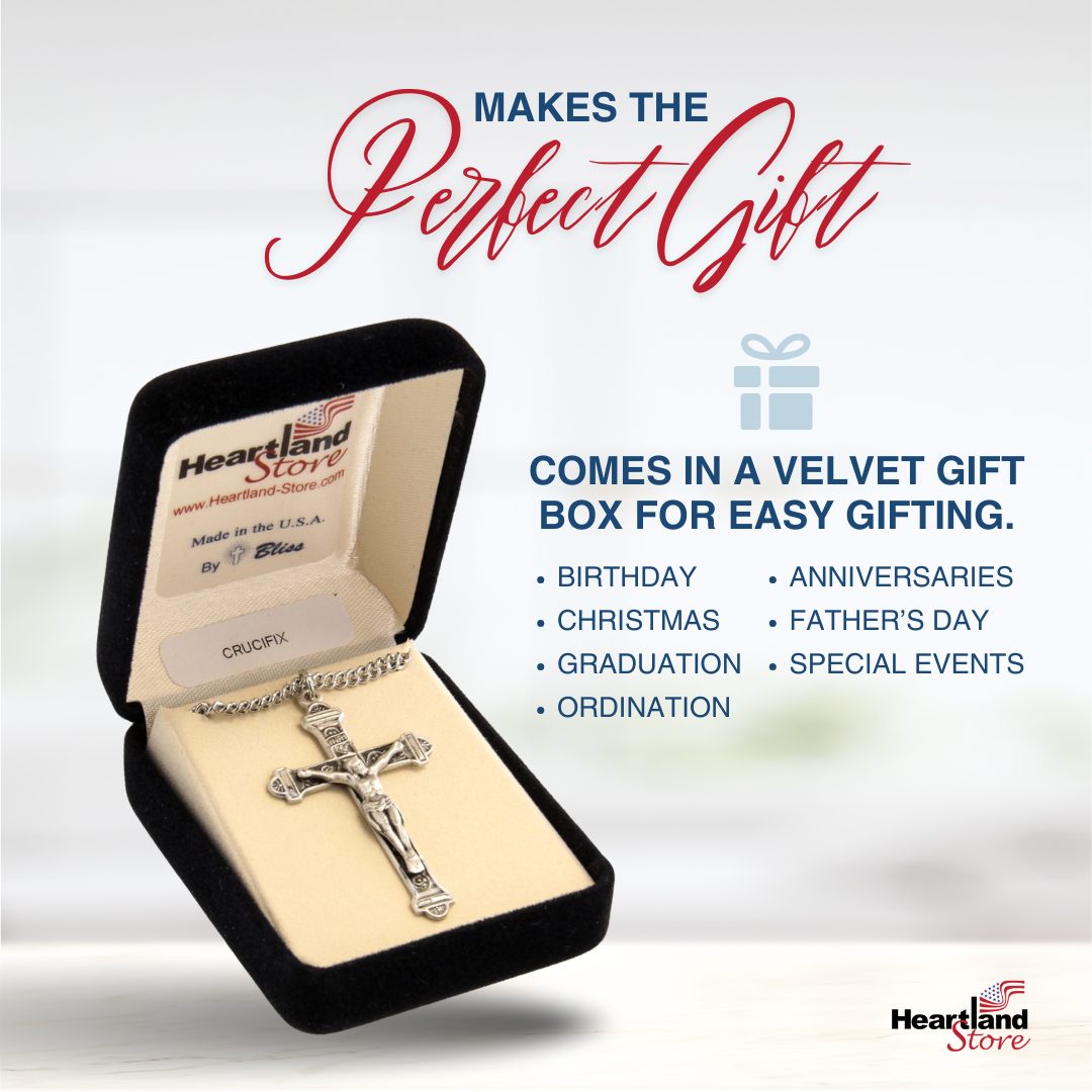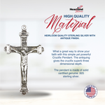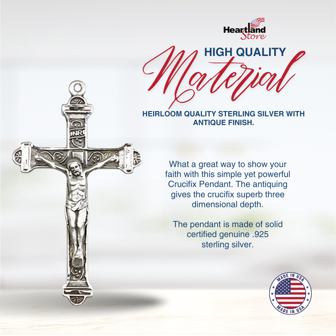 Men's Crucifix Pendant Antique Silver Accents Cross Bar Edges