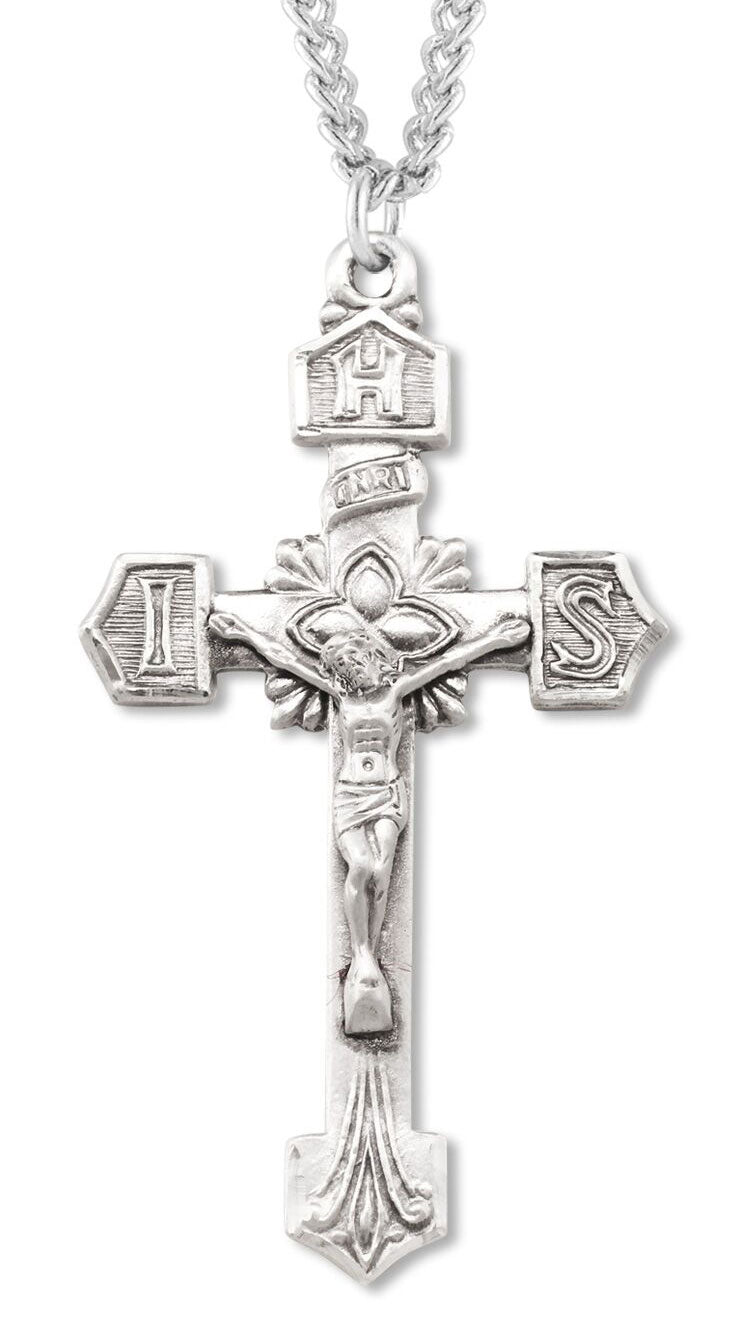 Men's Sterling Silver IHS Crucifix Necklace Pointed Tips with Chain Options