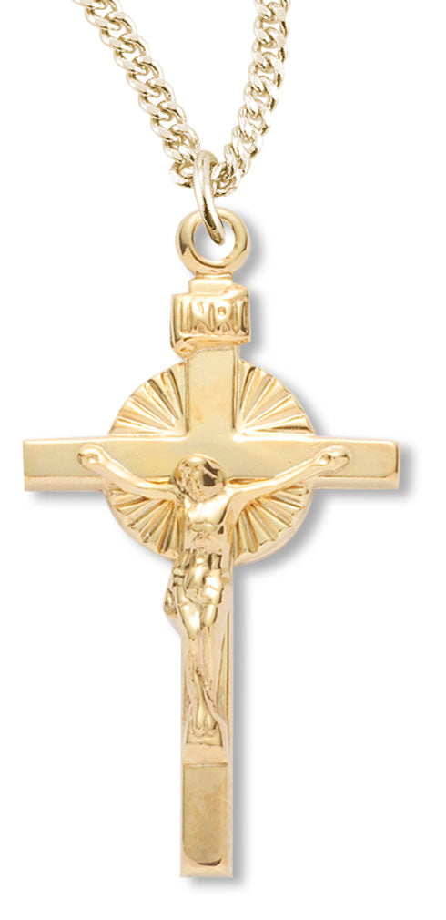 Women's 14kt Gold Over Sterling Silver Sunburst Center Crucifix Pendant + 18 Inch Gold Plated Chain & Clasp
