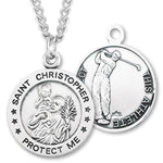 Round Boy's St. Christopher Golf Necklace With Chain - 24" Sterling Silver Chain + Clasp
