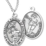 Girl's Oval Double-Sided Lacrosse Necklace with Saint Sebastian Back in Sterling Silver