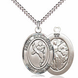 An oval shaped, dime size pendant with an image of St. Sebastian on the back and a Martial Arts athlete in the center. There is a selection of chains to choose from.