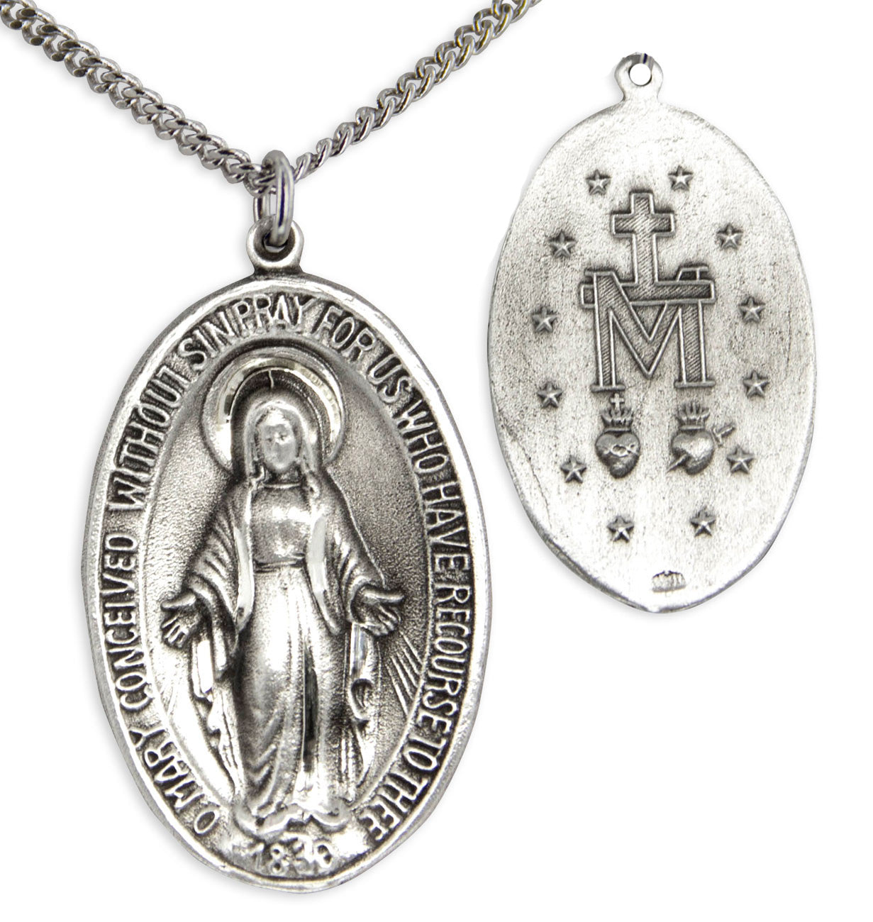 Large Sterling Silver Miraculous Pendant with Chain Options