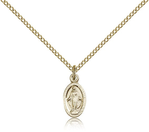 This Miraculous Medal is paired with an 18" gold filled light curb chain as pictured. All medals are gift boxed in a light blue velvet gift box ready for gift giving.