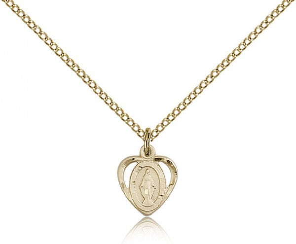 This Miraculous Medal is paired with an 18" gold filled light curb chain as pictured. All medals are gift boxed in a light blue velvet gift box ready for gift giving.