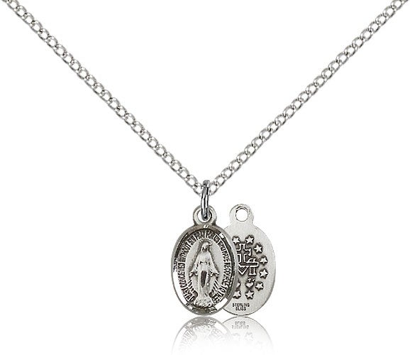 Miraculous Medal, Sterling Silver - 18" 1.2mm Sterling Silver Chain + Clasp