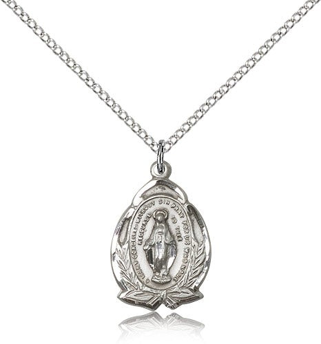 This Miraculous Medal is paired with an 18 inch sterling silver lite curb chain as pictured. All medals are gift boxed in a light blue velvet jewelry box ready for gift giving.