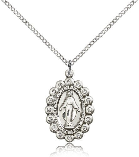 This Miraculous Medal is paired with an 18 inch sterling silver lite curb chain as pictured. All medals are gift boxed in a light blue velvet jewelry box ready for gift giving.