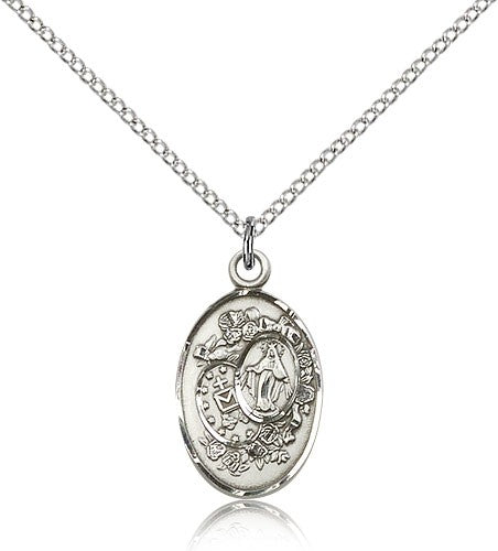 This Miraculous Medal is paired with an 18 inch sterling silver lite curb chain as pictured. All medals are gift boxed in a light blue velvet jewelry box ready for gift giving.