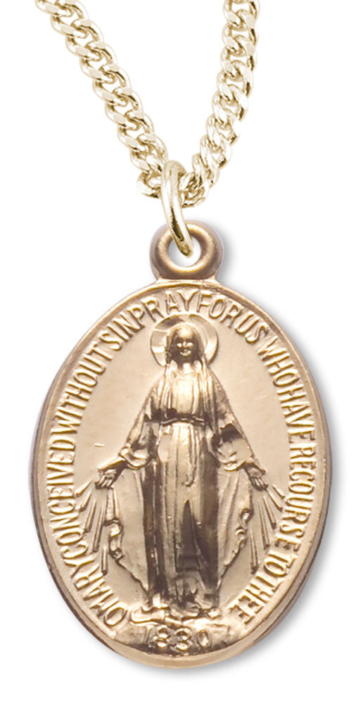Women's 14kt Gold Over Sterling Silver Small Oval Miraculous Necklace + 18 Inch Gold Plated Chain & Clasp