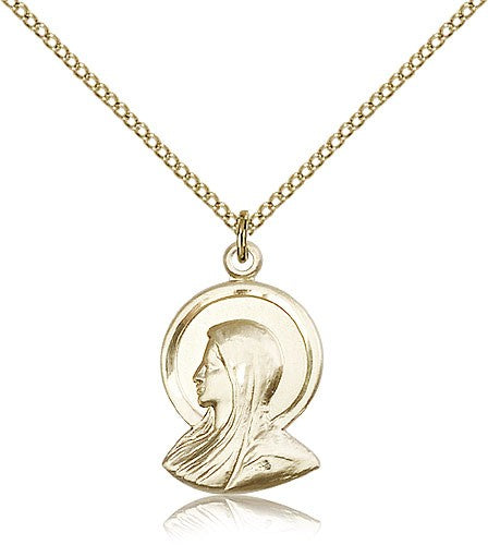 This Madonna Medal is paired with an 18" gold filled light curb chain as pictured. All medals are gift boxed in a light blue velvet gift box ready for gift giving.