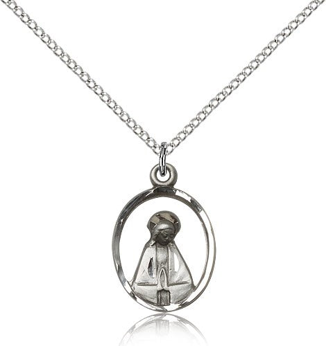 This Madonna Medal is paired with an 18 inch sterling silver lite curb chain as pictured. All medals are gift boxed in a light blue velvet jewelry box ready for gift giving.