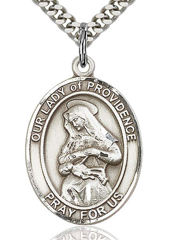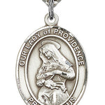 Our Lady of Providence Medal This Our Lady of Providence Pendant is made of sterling silver and is approximately the size of a quarter.