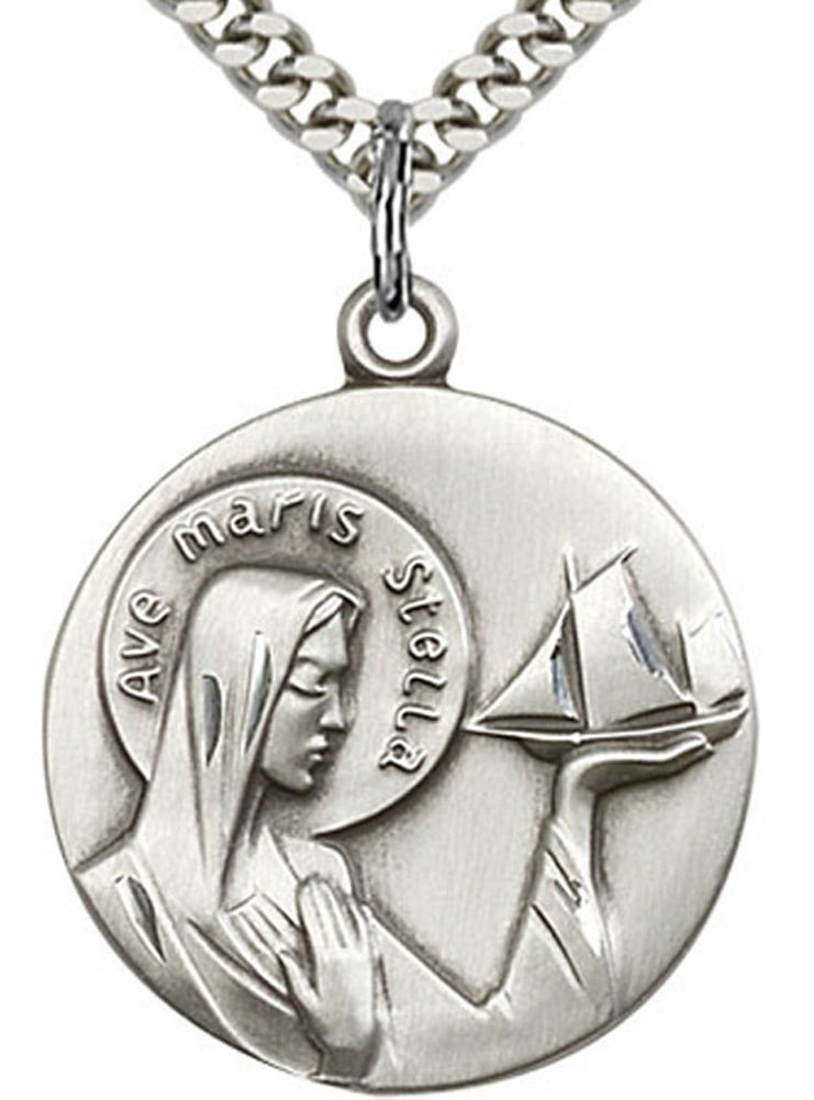 This Round Our Lady Star of the Sea Medal is the patron saint of Sailors.