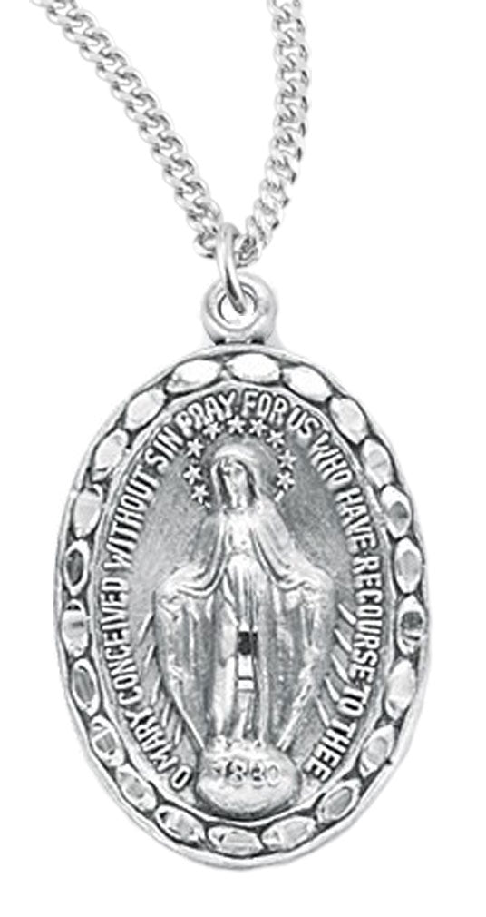 Women's Sterling Silver Miraculous Necklace with Beaded Border with Chain Options