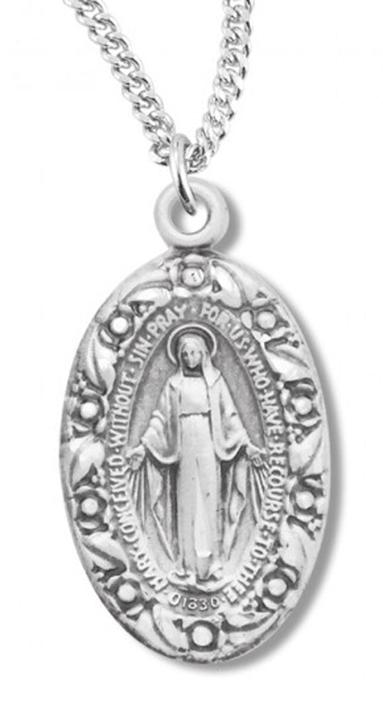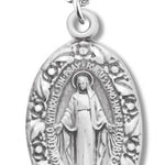 Women's Sterling Silver Miraculous Necklace Flower with Rim with Chain Options