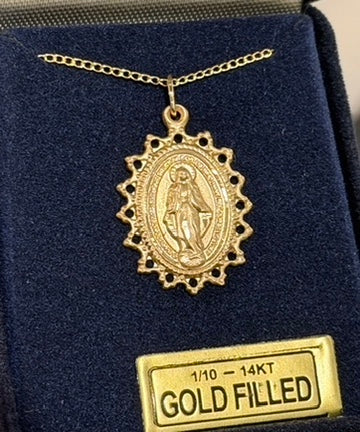 Women's Sterling Silver Miraculous Oval Necklace Scalloped Edges with Chain Options