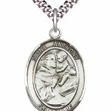 Men's Pewter Oval St. Anthony of Padua Medal - 24" 2.4mm Rhodium Plate Chain + Clasp