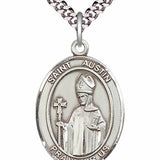 An oval shaped pendant with an image of St. Austin in the center. There is a selection of chains to choose from.