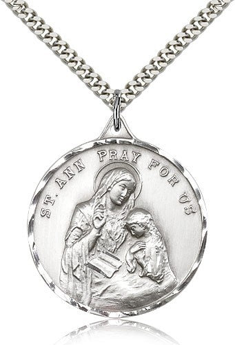St. Ann Medal, Sterling Silver - 24" 2.4mm Rhodium Plate Chain + Clasp