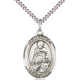 - Medal with 18" rhodium plated brass medium curb chain with lobster clasp
