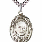 An oval shaped pendant with an image of St. Hannibal in the center. There is a selection of chains to choose from.