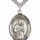 An oval shaped pendant with an image of St. Isaac Jogues in the center. There is a selection of chains to choose from.