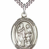 An oval shaped pendant with an image of St. Joachim in the center. There is a selection of chains to choose from.